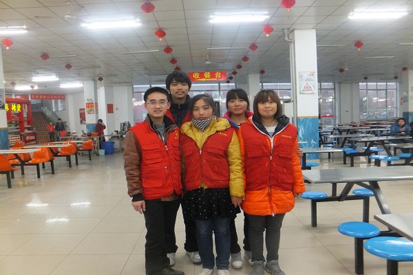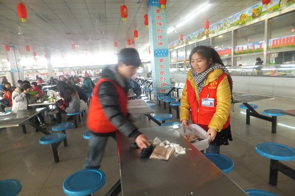 2013年12月13日,山东英才学院北校区青年志愿者协会组织宣策部在校餐厅进行环卫活动。