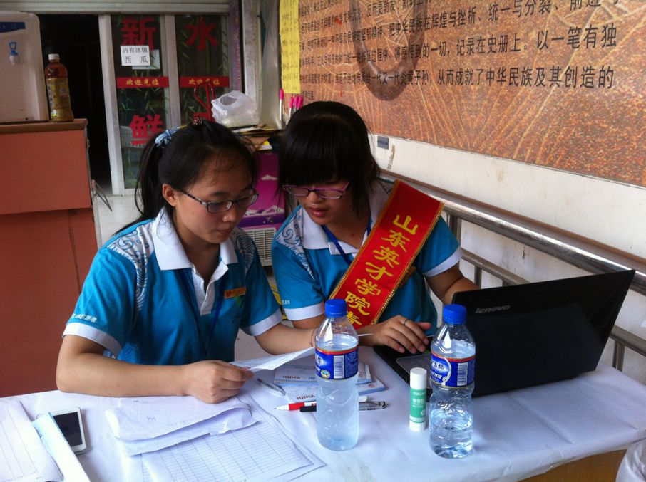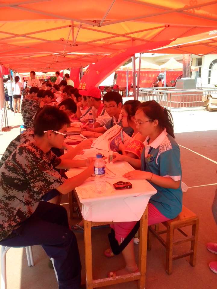 2013年8月16日 ,山东英才学院青年志愿者协会在新一届大一入校之际,于大学生活动中心门口进行招募,现场氛围热闹之极。