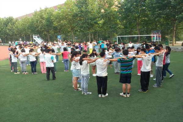2013年9月7日 下午,山东英才学院青年志愿者协会第二次“新部员户外培训活动”在田径场展开,参加此活动的有三百余名新部员和大二志愿者各干事。