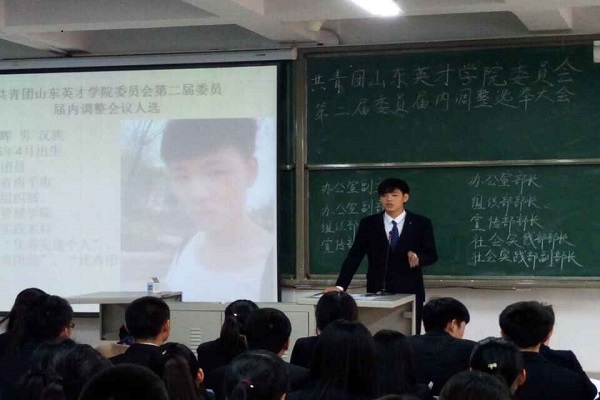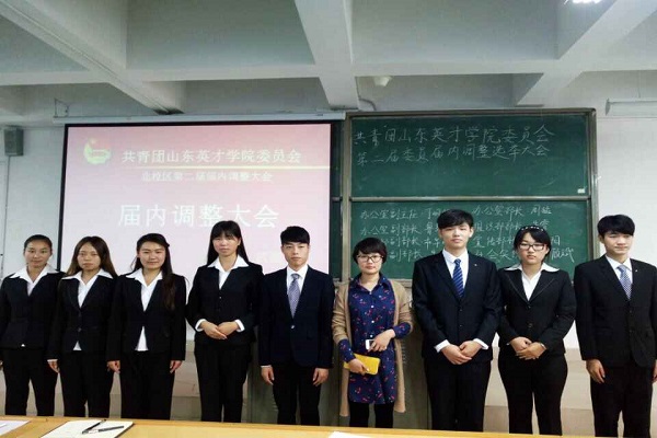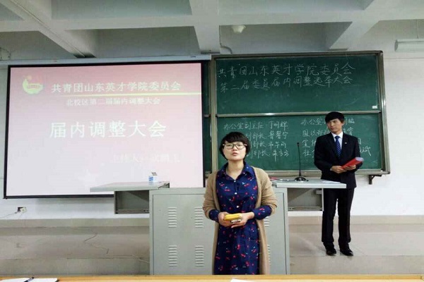 2015年10月19日山东英才学院北校区校团委在经管楼200举行了第二届团委委员换届选举大会。出席本次会议的有团委指导老师杨淑,广播台台长武鹏飞,艺术团负责人侯孟雨以及全体团委委员。