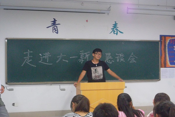 部员们都在B教学楼中间集合,由组织部人员负责安排入场。大家有组织有纪律的进场,然后按部门坐下。会议在组织部部长王桃彬的主持下先回忆了由团委老师中午的主题“走进大一新生”恳谈会,探讨自己的想法及大学计划。然后秘书长周锦萍给大家讲解策划书等格式,教部员慢慢融入工作中,了解自己所要做的,所要学的。最后,给大家讲解注意事项并让大家提出自己还有疑惑的地方。