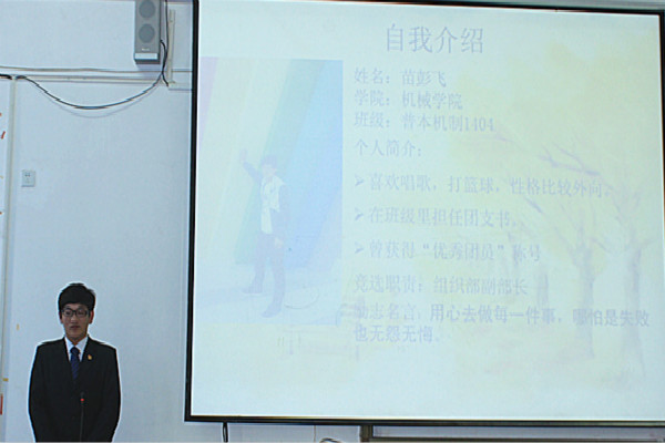 大会在庄严的国歌中拉开了帷幕,主持人王建洲老师首先介绍了团委出席本次换届的领导和老师。周子馨老师宣读了团委岗位设置和工作职责。在第三个环节中竞职选手精神饱满,谈吐大方,从对拟聘职位的认识及今后工作的设想等方面做了热情洋溢的演讲,各尽所能,充分施展自己的才华、以昂扬的姿态彰显出自我的优势。大会进行第四项由宣传部部长毕璇老师宣读主席团名单,由社会实践部部长寻芬老师宣读监票人以及计票人名单,由团委办公室主任何岩老师宣读选举方法,整个选举过程秉承“公开、公平、竞争、择优”的原则,采用民主选举和综合考察的方式进行,由工作人员统一发放选票,然后由计票人对选票进行统计,经过两个个多小时的角逐,最后入选的有团委办公室负责人祝蕾、丁新,组织部负责人姜于双、翟钰玺,宣传部负责人周红祥、王明雪,社会实践部负责人姜鹏辉、任秀敏,科技创新部负责人武超。最后,团委领导对这次大会做出总结,希望新一届成员以高度的责任感和饱满的热情投入到工作中,做事要从大局出发,明确自身定位,积极做好模范带头作用,团结协助开拓进取,为同学们营造一个良好的学习环境,争做一个团党组织信赖,学生满意的组织。
