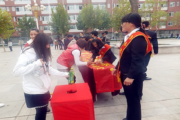 北校区志愿者冷建涛会长为本次活动签字,他向大家表示本次活动所有物品将用来给山区或一些需要帮助的老人和小孩捐赠,并亲身投入本次活动中。本次活动吸引了众多学生慕名闻声而来,志愿者负责人向大家表示,并积极为此次活动签字,表达了对彩虹计划的期待与支持。