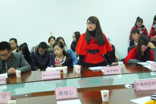 英才志愿者们到达山东传媒职业学院后,受到了传媒职业学院青年志愿者协会及记者团同学们的热烈欢迎,并在他们的带领下对学校状况及青年志愿者协会机构进行了大致的了解。下午15:30,交流会正式开始。环保局的科长王征出席了本次会议,并做了精彩演讲,绿行齐鲁、齐鲁工业大学等驻济高校也参加了此次交流会。在交流会的现场,英才志愿者们与各驻济高校青年志愿者协会代表进行了亲切交流。其中,齐鲁工业大学的“山东省煤炭项目”和凯文技术学院的“绿丝带”等活动的交流,让英才志愿者们开阔了视野,也长了见识,英才志愿者们还对驻济高校协会的章程、构成以及协会日常工作以及关于环保的活动都进行了细致的交流分析,同时,英才志愿者们也向驻济高校介绍英才学院的一些关于环保的活动,如“杜绝一次性用品”、“蓝天行动”、“美化校园”等,希望更多的人参与到活动中来。