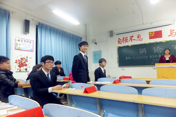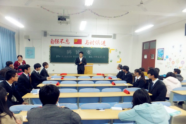 中午12点,第一场辩论赛开始,由经管分会和监察委员会对打。比赛激烈万分,辩论赛场上妙语连珠,精彩绝伦!场下的观众更为激动,热烈的掌声不停起落。其中最为精彩的是盘问和自由辩论环节,双方敏捷的思维、清晰的表达、慷慨激昂的言辞尽情展现出来,一次次的高潮激动人心。随后第二场也激烈进行。下午4点40,继续进行。晚上7点半,初赛结束。最后一场由宣策部和外联部对打,将本次比赛推向最高峰!不相上下,宣策部幸运地以三分之高赢得晋级资格。