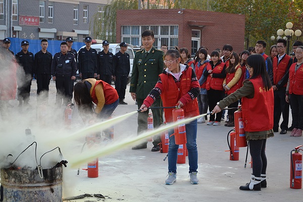 2013年11月12日北校区青年志愿者协会与特勤大队在6号楼举联合办了“消防应急演练”活动。本次活动特别邀请了济阳消防大队,主要有院张宗胜副院长、各二级学院院长、保卫科马处长等领导前来观摩。