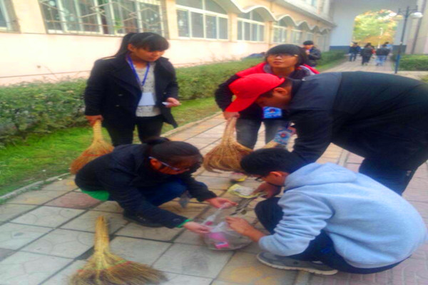 队伍分别分成了十队,分配到校园内十个不同的区域,协会内由宣策部的人员时时跟踪拍摄。孔孟广场上,志愿者们挨个打扫路上的落叶,A、B楼广场上,13号楼前,志愿者们认真,仔细的清扫着每一个垃圾。玲珑园内,垃圾虽然分布的有些凌乱,但他们还是一个个清理,因为没有铲子,他们甚至用手去抓垃圾放进袋里。车库前,看着树上飘下的树叶越来越多,他们还是耐心的扫着,活动持续到十二点才结束。这种种场景,无不体现了青年志愿者的不怕苦精神及为同学服务的奉献精神。