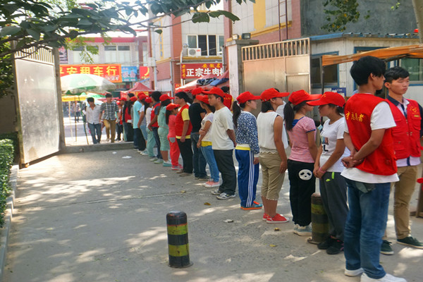 本次活动是青年志愿者协会本学期第一次校内活动。上午10点30分志愿者们早早的来到了大学生活动中心前集合,在会长孟庆攀的安排下,前期准备工作井然有序。志愿者们带着红帽子,配带着红绶带,穿着红马甲,整齐的站在东门口。看上去,就像一条长长的红丝带,心系你我他,爱心传天下。每个人都精神抖擞,朝气蓬勃,充满了正能量。志愿者们排成的队伍把东门口的路分为两部分,南面出,北面进。这样就很有效的缓解了交通堵塞的问题。看着来来往往的路人,志愿者们脸上都露出了甜美的笑容。他们看到志愿者们微笑着劝导路人的场景后都自觉地按照指示要求行走,路过的学生向志愿者们投以赞许的目光。