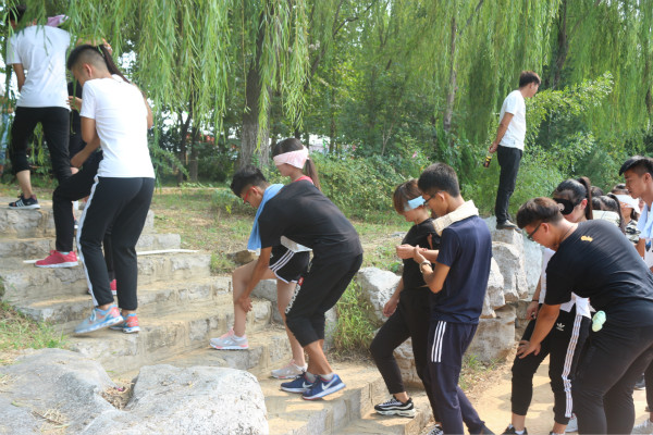 各部门部长、副部长带队在简单的热身运动之后分队进行一个名叫“风雨同舟路”的游戏,每一位男生都会和一名女生搭档,他们都会携手走过一段路程,期间女生会蒙住眼睛,路程上会设有很多障碍,而有难度的是男生只能靠肢体语言来告诉身边的女生前面的障碍,同时也需要女生对搭档足够的信任,这样游戏才得以继续,在这段路程中可能会有负责人的人为障碍,也会有树木石头一样的障碍,需要彼此的信任,这个游戏才会充满意义,返回时男女生调换,带队返回。这个游戏进行了大概一个半小时,通过这个游戏让大家都明白信任合作的重要性,在某种程度上帮助团队达到共同学习的目的,培养团队精神。到最后,游戏结束,每一队都完成了任务,最后每一队的人在一起讨论胜利走回来的原因,每个人都简单的谈了自己的心得感受。我相信他们每个人得到的东西一定都是最珍贵的。在每件事情前要敢去想,敢去做,做之前一定要有充足的准备,一定要做到谨慎周密,虽然对一些事情,我们还不了解,但一定要多接触,一定要有责任心。