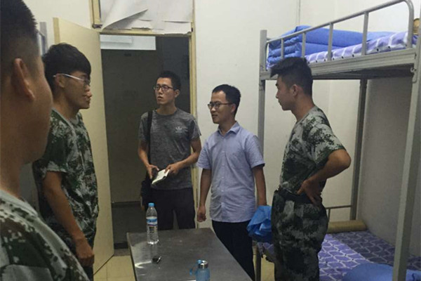 武玉兴院长带领各级辅导员视察了我院所有的新生宿舍。来到新生宿舍之后,领导们首先视察了住宿环境及宿舍各种设施,确保新生住得安心,住得舒服,能够尽快适应校园的住宿生活,开始他们新的人生旅途。新生们来自五湖四海,不论习俗还是生活习惯总存在偏差,初到校园的他们内心总有惶恐。院各级领导为了让新生感受到学院对他们的关心,亲自前来慰问。