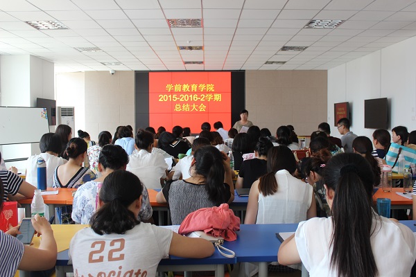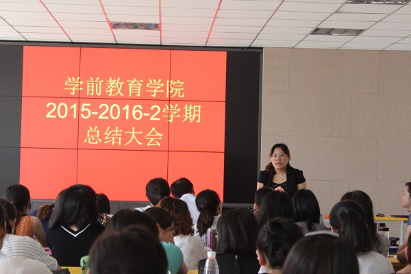 2016年7月11日9点30分,学前教育学院在3020主控室召开了2015―2016学年第二学期期末总结大会。学前教育学院院长宋占美教授、党总支书记王冠良、常务副院长夏竹筠、教学副院长高瑾、行政副院长郑雯、实验教学中心副主任刘玲、张磊等领导出席会议,学院全体教职工参与会议,郑雯副院长主持会议。