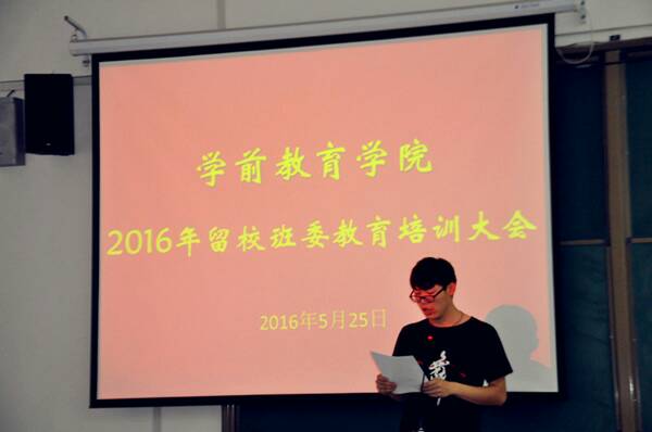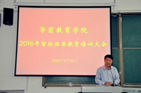 为进一步加强对学生干部队伍的管理,促进学院各类工作高效率、高质量的完成,学前教育学院于5月25日下午18:30在学前楼5006教室召开了2016年留校班委教育培育大会。参加此次会议的有学前教育学院党总支书记王冠良,各级部主任与兼职班主任老师,各级部留校班委等,本次会议由行政秘书曹鹏主持。