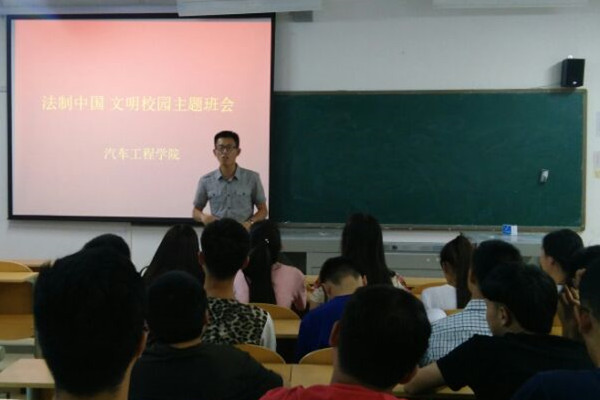 2016年6月12日晚,全体汽车15级同学在汽车楼3003集合,参加七五普法主题班会,班会由辅导员李俊琪老师主持。班会首先介绍了解了《中央宣传部,司法部关于在公民中开展法制宣传教育的第七个五年规划(2016-2020)》的文件精神,在此文件中指出法制宣传教育的对象是一切有接受教育能力的公民,重点是领导干部和青少年。政府和社会十分关注当代青少年的法律意识养成工作。