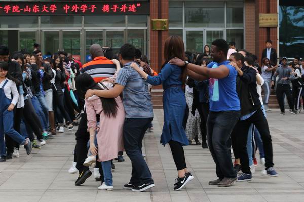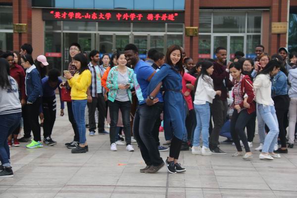 为了拓展学生的国际视野、促进中外学生之间的交流,营造英才学生与外国留学生互帮互助的良好学习氛围,由外国语与国际交流学院基层团委策划,以“中外学子展风采、文化交流架桥梁”为主题的中外学生联谊活动于2016年5月9日下午在北校区举行。山东大学国际教育学院100余名来自美国、南非、尼泊尔、斯里兰卡、哈萨克斯坦、叙利亚等46个国家的外国留学生与我校北校区各学院140余名学生共同参与了联谊活动。