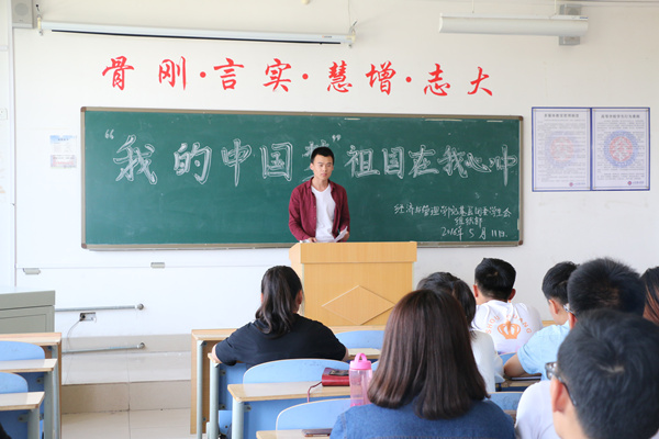 为了深入学习贯彻中共中央总书记习近平同志关于“中国梦”一系列重要讲话精神。2016年5月11日中午12:00在教学楼B―507经济与管理学院基层团委、学生会组织部开展了“我的中国梦,祖国在我心中”的主题活动。2015级各班级学生干部参加了此次会议,杨鑫主席作为此次活动的主讲人。