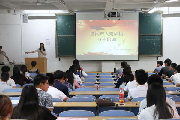 2016年5月11日中午,经济与管理学院在教学楼B100教室举行了济南市入党积极分子培训。按照《中国共产党章程》和《中国共产党发展党员的工作细则》要求,切实做好入党积极分子的培训工作。