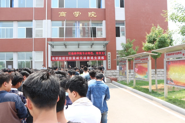 至此5月12日“防震减灾日”到来之际,为进一步提高广大同学安全防范意识,正确应对火灾、防空、地震等带来的安全隐患,提高逃生技能。5月10日中午,我院在商学院楼组织开展了2016年度防空防震减灾疏散逃生演练。商学院副院长高强、基层团委书记邢辉、行政秘书张保林、全体辅导员老师以及800余名同学参加了本次疏散逃生演练。