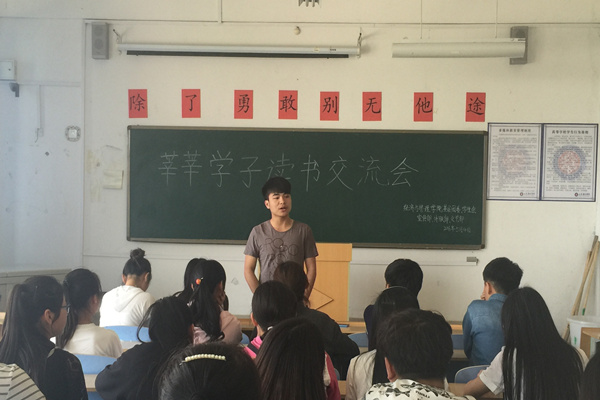 为丰富同学们的课余文化生活,增添校园人文气息,经济与管理学院基层团委、学生会宣传部、外联部、文艺部于2016年5月4日在教学楼511教室联合组织了读书交流会,各班级学生代表参加了此次活动。