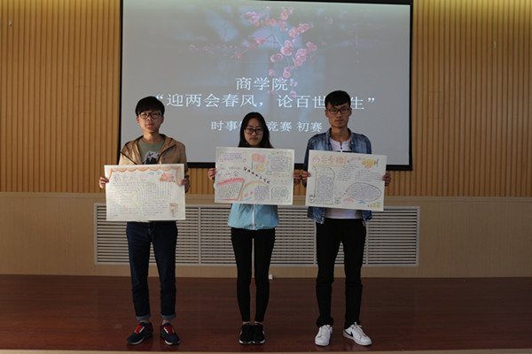 为了扩展同学们的时事视野,营造关注时事动态、关心政策走向的良好学习氛围,2016年4月,我院开展“谈变革,话发展”主题教育活动。踏着4月的步伐,我们商学院积极响应号召学院“聚焦两会”、“谈变革,话发展”主题活动,举办了“聚焦两会”主题手抄报大赛。