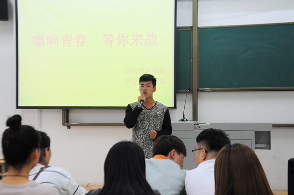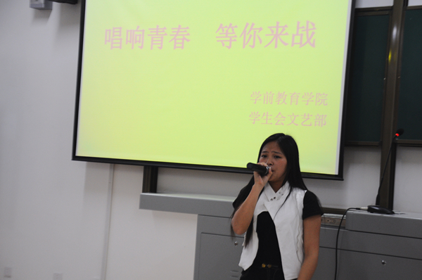 为丰富大学生的课余活动,彰显当代大学生积极向上的精神风貌,由学前教育学院学生会文艺部举办的“歌唱青春,等你来战”校园歌手大赛于2016年4月20日在学前楼5006拉开帷幕。本次比赛的评委团来自学生会文艺部,参加此次复赛的同学均是从初赛中脱颖而出的选手。