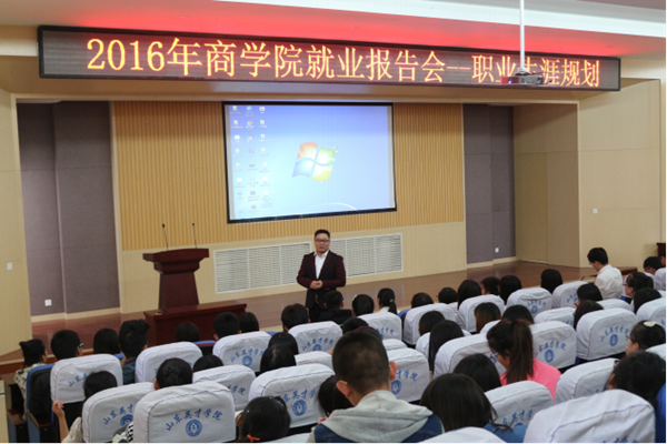 为进一步增强广大学生职业生涯规划的意识,提升就业技能。2016年4月26日上午12:00,我院在商学院楼学术报告厅举办了大学生职业生涯规划教育专题报告会,本次讲座邀请了上海幸福9号网络科技有限公司华北区总经理文宏星主讲。商学院副院长高强、就业秘书张保林、部分辅导员以及部分学生代表参加本次报告会。