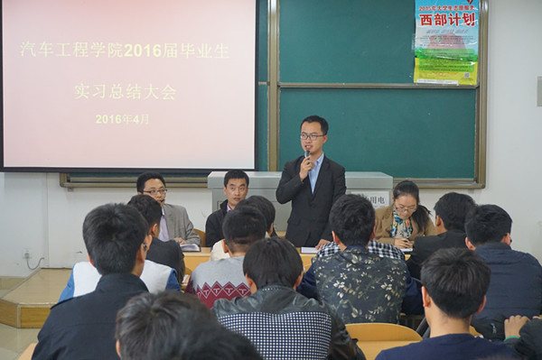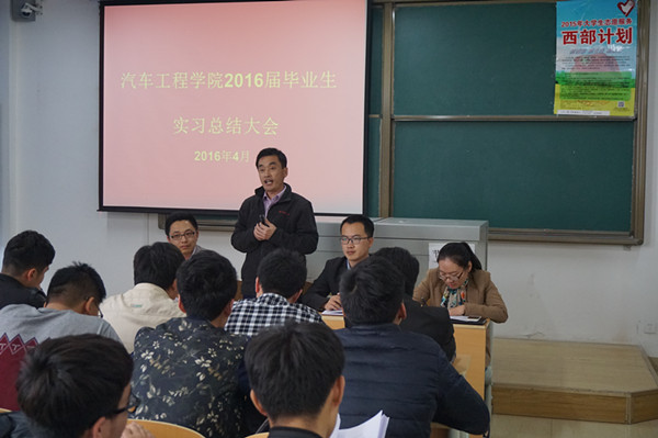 响应学校的号召要求,汽车工程学院特于2016年4月16日在汽车楼4005会议室举行了毕业生实习总结大会。既是对优秀实习生、优秀实习队长、优秀实习带队老师进行表彰以资鼓励,又是向我系大三同学展示优秀榜样,使他们获得经验。出席本次大会领导老师的有:汽车工程学院刘艾清院长、汽车工程学院行政院长武玉兴、就业干事张宁老师。