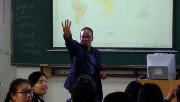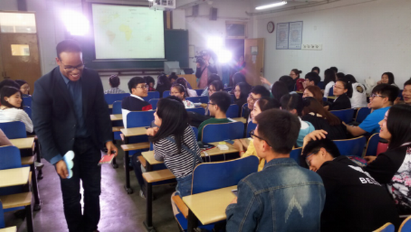 随后的英语角中,Micah以 “Traveling” 为主题与同学们进行了积极互动交流,该环节主要围绕同学们所了解的世界各地国家国名以及期望的旅游景点等内容展开互动交流;互动过程中,同学们与Micah全英对话并有礼物赠送,这不仅展现了学生们的英语风采,也表现出他们强烈的英语表达欲望和学习热情,更重要的是借此机会同学们的英语口语水平也得到了进一步的提高。