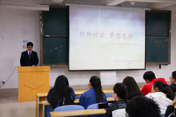 为了让同学们感受交换生的游学体会,领略其他地区的教学风格和学习氛围。4月8日经济与管理学院基层团委宣传部在教学楼B-100教室,举办一场以“信仰对话 梦想交融”为主题的交换生交流会。参加本次交流会的有经济与管理学院的两名交换生代表,团学干部和各班班长、团支书。