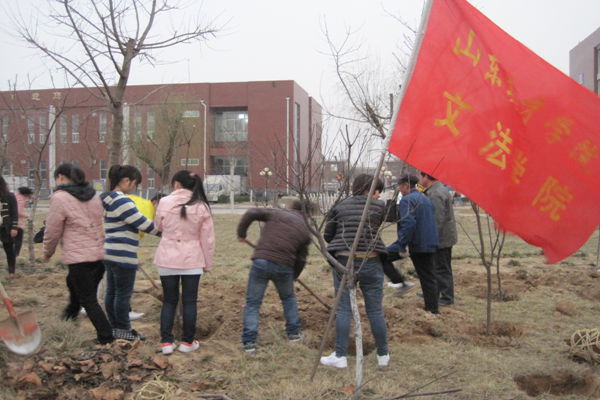 阳春三月,草木秀润。为进一步提高全院的绿化意识和文明素质,打造绿色学习环境,构建和谐文化校园。文法学院基层团委、学生会于3月12日早7点,在山东英才学院北校区开展植树活动,文法学院基层团委学生会成员积极参与,取得良好效果。