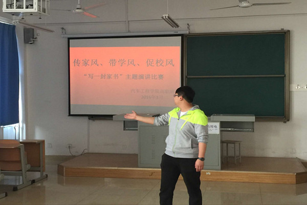 3月17日至18日,本科汽服班和高职汽修班共7个班级,在各班团支部的发动下,组织了“一封家书”演讲大赛,挑选质量上乘,感人至深的家书,在班级里由同学深情朗诵。同学们在赛后,纷纷表示,听了其他同学的家书,很受触动和鼓舞,对同学的了解更深入了,对家庭和父母多了一层认识。