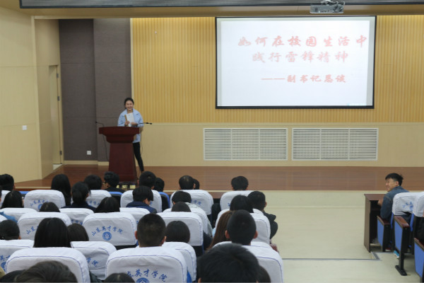 会议开始,刘红副书记首先带领大家一起传唱了歌曲《学习雷锋好榜样》,和大家一起重温了雷锋事迹。刘红副书记说:“雷锋精神历经时代变迁,几经潮起潮落,它不仅没有陨落,反而放射出更加耀眼的光芒,雷锋精神所体现的社会责任、道德标准和人性良知等无不是中华民族五千年优秀传统美德的体现,雷锋精神所蕴含的崇高理想信念和奉献、敬业、创新等精神也正是社会主义核心价值观的体现,因此,学雷锋精神不会随时代的变化和环境的改变而失去现实的意义。”