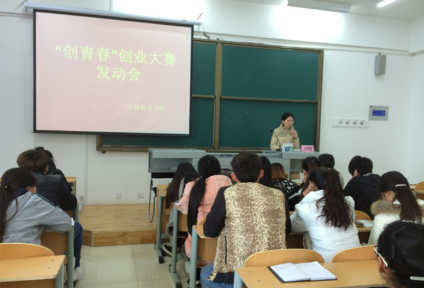 为激发大学生创业精神,培养社会新型人才,我院积极倡导大学生参与到“创青春”创业大赛的活动中来,由学前教育学院主办的“创青春”创业大赛发动会于2016年3月14日上午12:00在学前新楼6004教室举行,学前教育学院基层团委书记王坤丽参与并主持了此次会议,参加此次会议的还有全院班级代表。