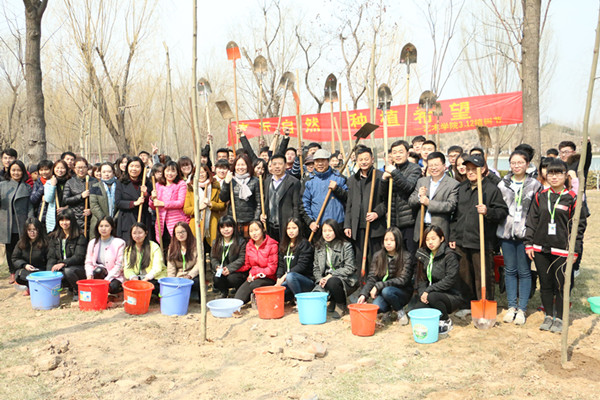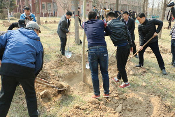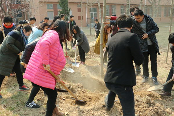 3月11日中午,在北校易湖南侧园林区,校区领导、艺术学院领导与师生们积极开展植树活动。活动过程中,师生们人手一把铁锹,有秩序、有规划地进行幼苗种植,培土浇水,以饱满的热情和欢快的激情投入到活动中去。在这春暖花开的季节,在这具有积极向上意义的节日里,领导与师生们融为一体,大家都牟足了干劲,看着50多棵充满生机的树苗昂首挺立,大家脸上都露出了欣慰的笑容。很多学生都认为这次活动富有充实的意思,不但了解了植树的过程,同时也通过自己的辛勤劳动感悟出环保行动的重要性。最后,到场的领导与师生们合影留念,活动在团结向上的氛围中画上圆满句号。