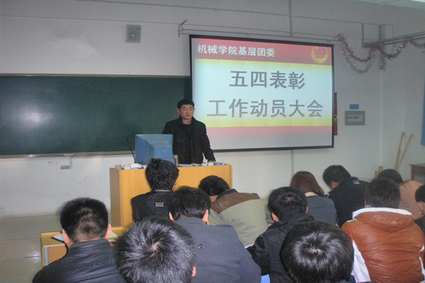 为进一步推进学院共青团工作,激励广大团员青年创先争优,更好的为学院改革、发展、建设做贡献,依据鲁英才团字【2013】5号《关于在2013年五四期间表彰先进集体和个人的通知》,机械学院基层团委于4月2日召开了五四表彰工作动员会议,出席本次会议的有机械学院基层团委书记刘阁及基层团委、学生会主要学生骨干。