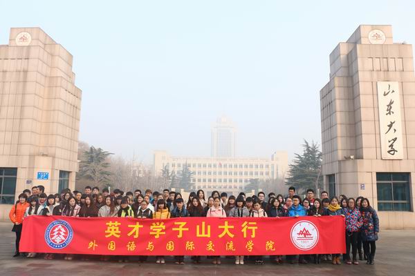 欢送2015,喜迎2016。年末岁首跨年之际,为了提高社会实践能力、开阔思路、加强校际合作,外国语与国际交流学院财务管理、工商管理专业本科生(包含经管学院部分学生)在外国语与国际交流学院基层团委组织次下,在教学副院长徐贵丽副教授老师的带领下,与山东大学管理学院联合举办了“英才学子山大行”活动。