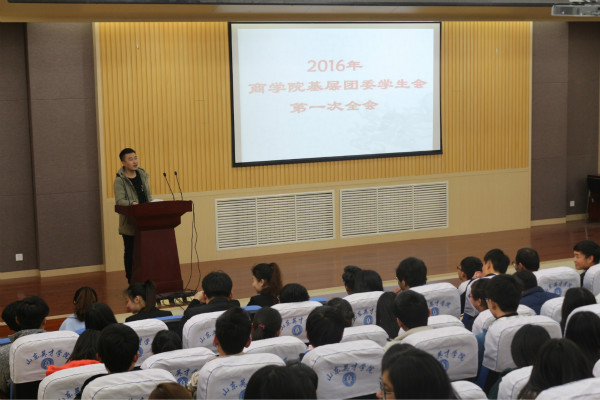 2016年商学院基层团委学生会第一次全会于3月11日下午5点20分在商学院二楼学术报告厅召开。参加此次会议的是商学院基层团委学生会全体成员,此次会议由学生会主席杨希伟主持。