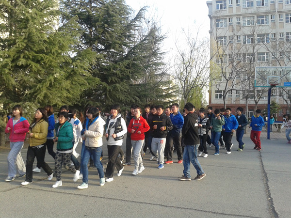 同学们在建工体育部成员的组织下于2013年4月10日清晨开展了早操活动。同学们在各自的位置站好排成一个方队,每一位同学都昂首挺胸,充满了青春的活力与朝气,齐整整的队伍似无声的语言充分展示了每一个学院的组织性、纪律性。嘹亮的口号响彻耳旁,喊出了每一位同学的心声,使得原本静寂无言的清晨充满了运动的气息。每个学员都有自己的特色,每位同学都跳起了充满青春气息的动感舞步,矫健的身姿成了校园中一道亮丽的风景线。