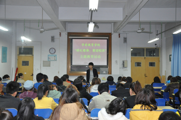 为喜迎英才学院建校15周年,我院学前教育学院于4月9日在A楼5011教室积极开展了“明礼修身,喜迎校庆”主题教育活动。学前教育学院基层团委学生会筹办并组织了此次活动。