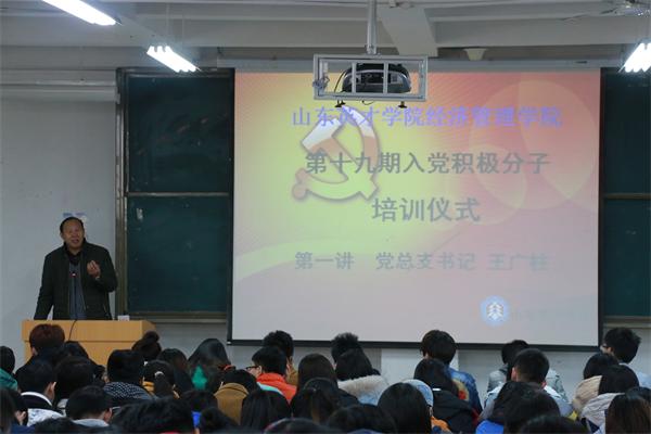 为了更好的培养出一批有作为的党员,经济管理学院于2015年12月16日中午在经管楼B100教室举行了第十九期入党积极分子的培训,莅临此次培训会的领导有经济管理学院党总支书记王广柱,经济管理学院学生党支部书记赵昆。