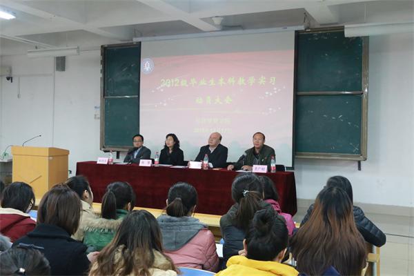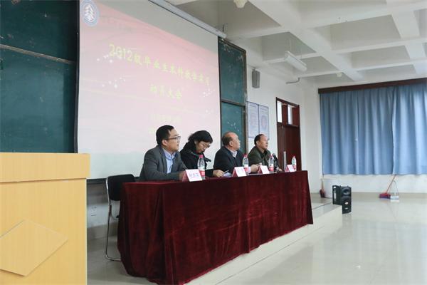 为了提高毕业生实践能力和综合素质,经济管理学院于2015年12月17日下午14时,在经管楼B100教室举行了2012级毕业生本科教学实习动员大会。参加本次大会的有经济管理学院院长张红旗、教学副院长张黎、行政副院长王广柱、就业副院长杜志玉以及经济管理学院2012级本科毕业生。