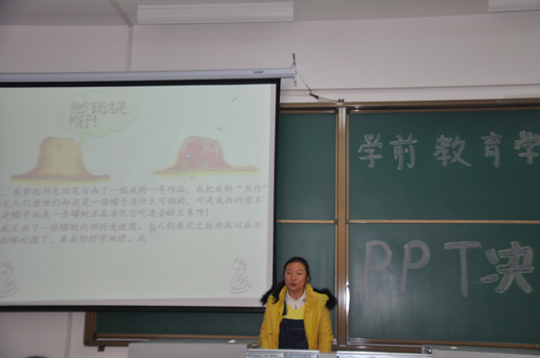 为提高同学们制作PPT的能力,加强同学们的创作意识,展现学前教育学院的风采,2015年12月18日12点,在学前教育学院新楼6004成功举办了学前教育学院PPT大赛决赛,此次PPT大赛由学前教育学院学生会秘书处主办。出席本次PPT大赛的嘉宾及评委有学前教育学院学生会副主席王棋,基层团委副书记徐东芳,宿管会主席庄广雁,学生会纪检部部长王欢,学生会记者团团长曾睿瑞,学生会秘书处部长王志红。