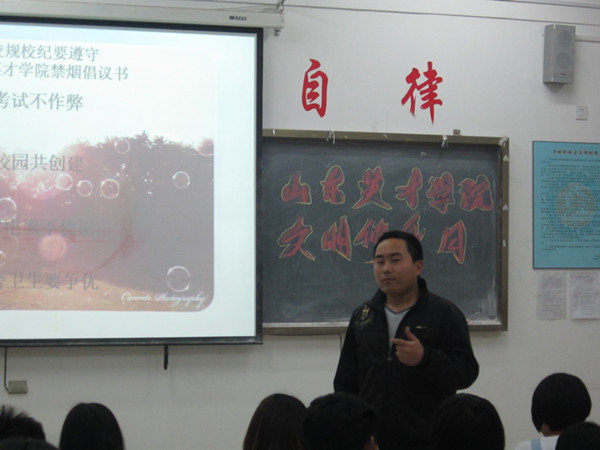 为积极响应学院号召,商学院继开展安全教育周活动之后,在全院进行了校园文明修身月主题教育班会。随着无烟校园活动的开展,校园的抽烟人员少了很多,借此机会,我们商学院积极开展校园文明修身月活动,此次活动主要分为两步进行,商学院学生会召开全体班级班长和团支书会议,宣传动员班级骨干积极宣传,以身作则,各班级辅导员在班级中对全体同学进行文明修身教育引导,借此加强商学院学生的自身素质建设,商学院学生会并要求各班级上报活动开展情况。