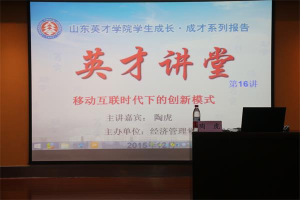 此次以“移动互联时代的商业模式创新”为主题的英才讲堂取得了令人惊喜的效果,整个报告有广度,更有深度,让我们又一次感受了“移动互联网+”时代的商业模式的变化。让我们明白了身处转型期,教师该如何教、学生该如何学,应该学习什么样的教学模式,如何培养学生的创新能力等问题。本次讲解全面提升大学生对移动互联网的认识,加强了他们的创业意识、激发大学生创业潜能,学生们对于移动互联网及创新都有了更深的了解,对于自己的人生职业规划有了进一步思考。