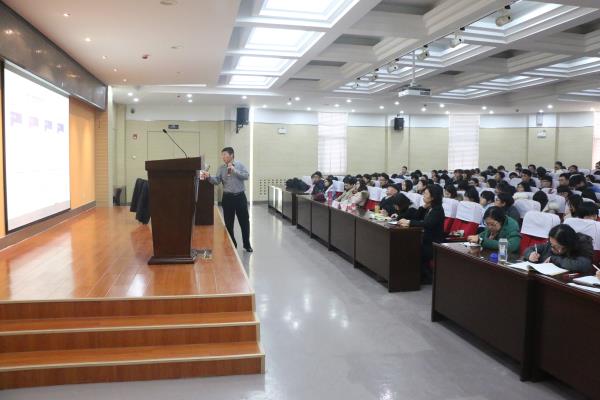 为了加强大学生对移动互联网的认识,加强创新意识,提高创业能力。经济管理学院于2015年12月10日在北校区学术报告厅组织开展以“移动互联时代的商业模式创新”为主题的英才讲堂。本次讲座邀请到了山东财经大学MBA学院院长陶虎教授,出席本次讲座的有经济管理学院院长张红旗、教学副院长张黎、全体教师及部门工商管理专业学生。