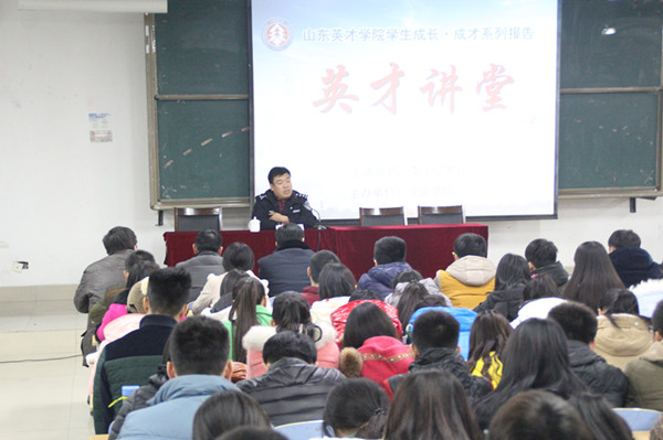 为了深入贯彻落实党和国家为建设法制社会的大政方针,我文法学院英才讲堂在学生成长系列讲座中,为进一步提高同学们的法制意识做了充分准备。文法学院特于2015年12月8日下午2:00在经管楼100教室举行法制讲座,并邀请了派出所所长同时驻山东英才学院警务室的李玉堂警官、齐指导员、保卫处处长以及文法学院院长和辅导员参加,由李玉堂警官担任主讲。