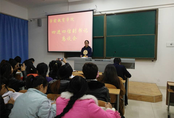 为了引导和帮助广大青年学生和团学干部积极响应党的十八大以及习近平主席发表的系列讲话,学前教育学院基层团委副书记徐东芳于2015年12月08日下午18时30分在学前新楼6004教室开展了“四进四信”的恳谈会。2015级全体班长团支书参加了此次会议。