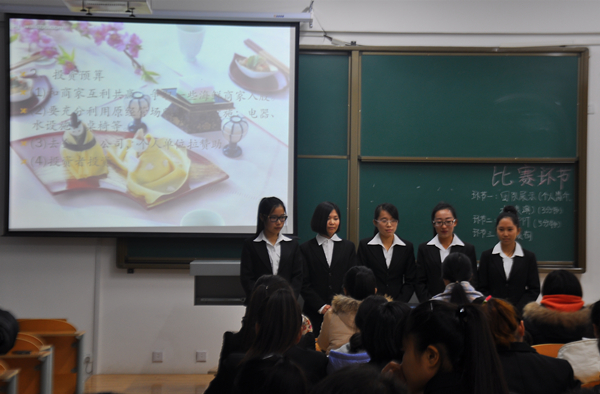创业计划大赛初赛共有三个环节,环节一是团队展示,包括个人简介和才艺表演,时间为三分钟;环节二是讲解PPT,时间为五分钟;环节三是评委质询。结合大学生生活的现状,本科二班的“时光深处休闲吧”面向广大大学生创建了一个集餐饮、娱乐、学习为一体的情侣休闲吧,并且购买休闲吧的东西可以送货上门。而本科一班的木马团队所创建的“晚安吧”,则解决了大学生的聚会问题,“晚安吧”内有单独的包间,包间里有K歌工具和酒水,同学们可以在里面办生日party和进行部门聚会。还有学前教育学院学生会外联部樱之宴队的同学创建的“华尔兹日韩自助料理店”为广大美食爱好者提高了美味的大餐。每支团队都介绍了具体投资,剖析了现在市场的有利情况以及销售和宣传策略。