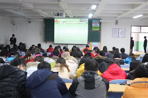 2015年12月9日,经济管理学院基层团委、学生会科技创新部在经管楼举行了经济管理学院“西部计划”启动仪式,由科技创新部门的谢添翼为在座的应届毕业生讲解了有关“西部计划”的具体内容。