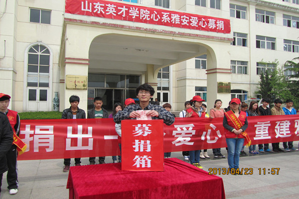 捐款活动于上午11点30分举行,学院领导率先捐款,随后各二级学院、机关单位师生,分两队依次走过捐款箱,为灾区学子慷慨解囊奉献爱心。在得知此次活动后,机械学院全体师生广泛行动起来,在下课后,在机械学院基层团委的统一布置、安排下,各班级班长统一组织,为四川雅安籍学生自愿捐款,以表示爱心。在捐款活动中,同学们有的捐几十元,有的捐上百元,虽然数目不同,但爱心同价。参与捐款的学生们纷纷表示,自己的同学家里受到了灾难,为他们捐献一点钱,表达自己的一份爱心是完全应该的。