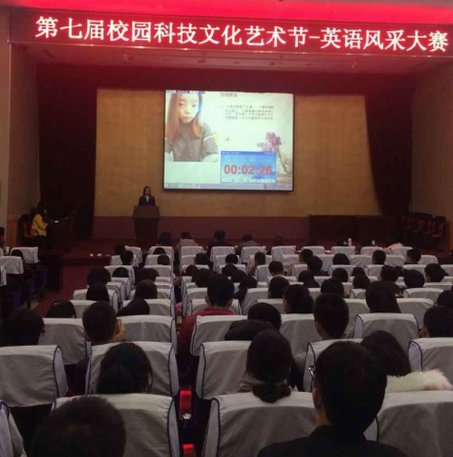 为了活跃校园文化生活,拉近英语课堂与学生生活的实际距离,提高学生的英语应用水平和交际能力。2015年11月19日12:00,由外国语与国际交流学院基层团委承办的第七届校园科技文化艺术节之英语风采大赛在南校区学术报告厅隆重举行,院团委王鹏飞副书记、外国语与国际交流学院基层团委祝景朋书记及200余名学生参加此次比赛,本次比赛的评为由英语教师盖美娟、生婧、王斐、侯环环、李文娟、杨健健老师及外交David担任。